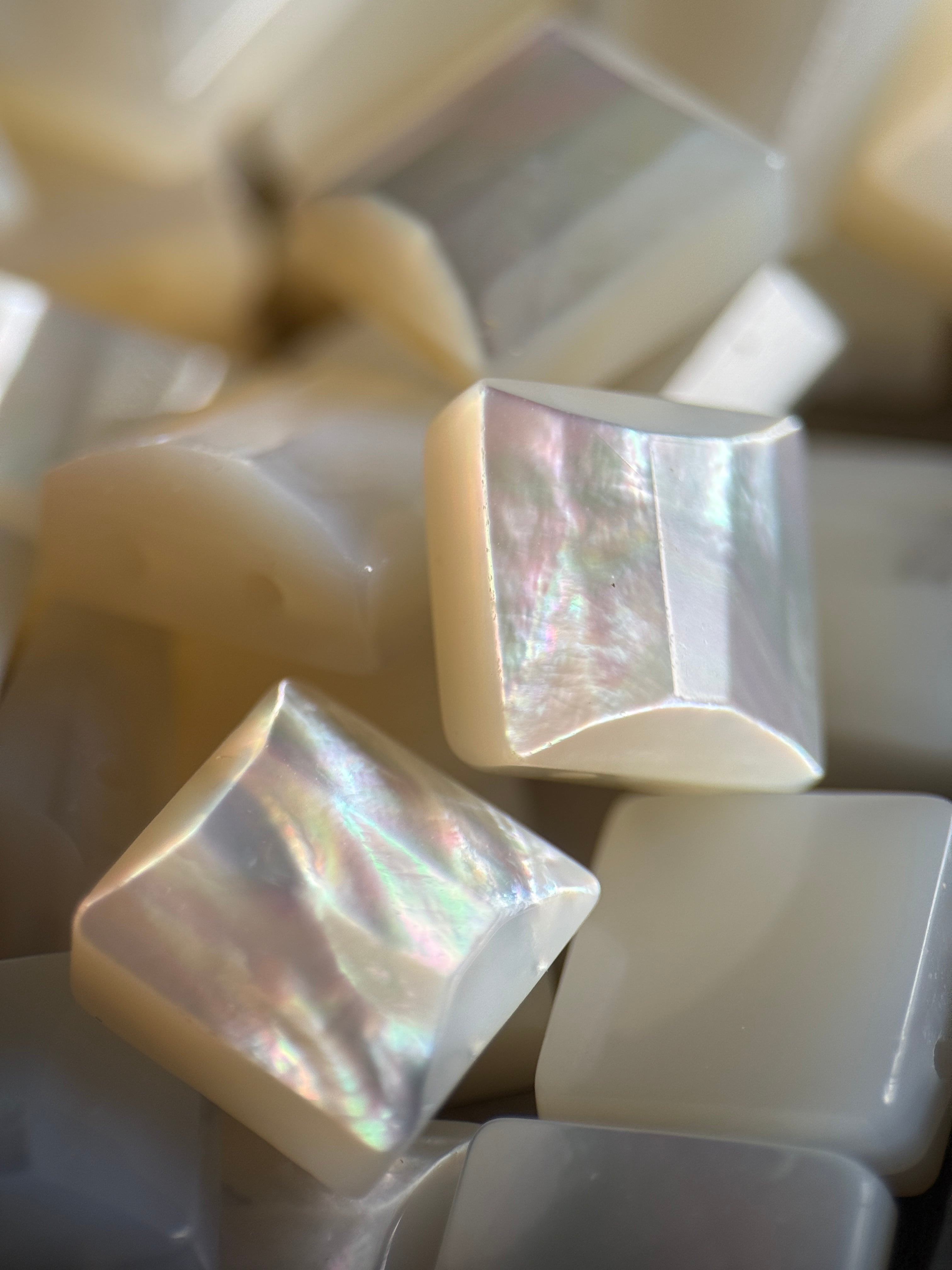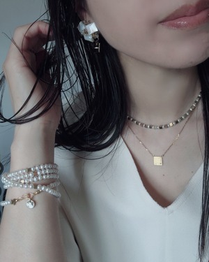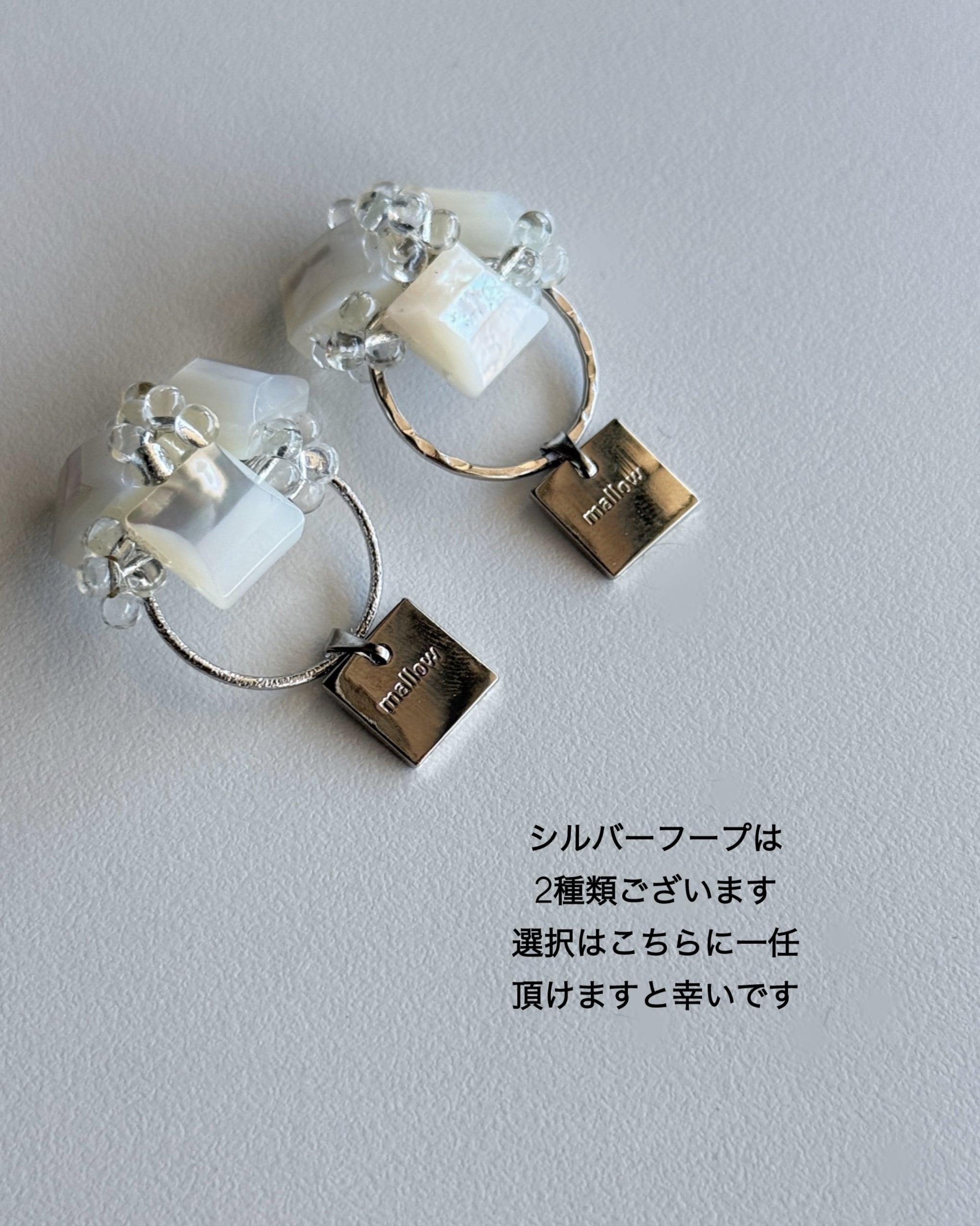 どの角度から見てもシェルの輝きが楽しめるように編み込んであります
