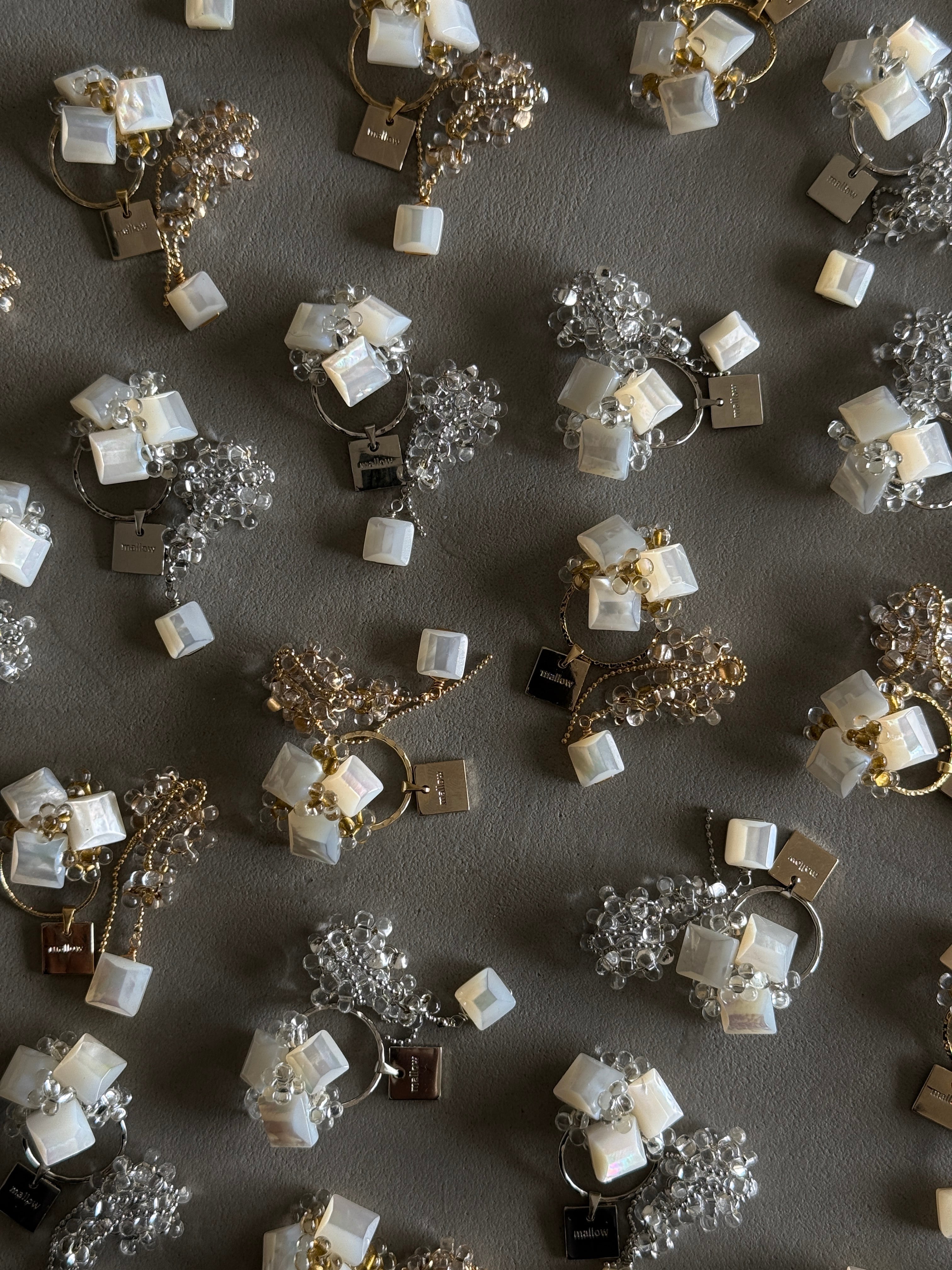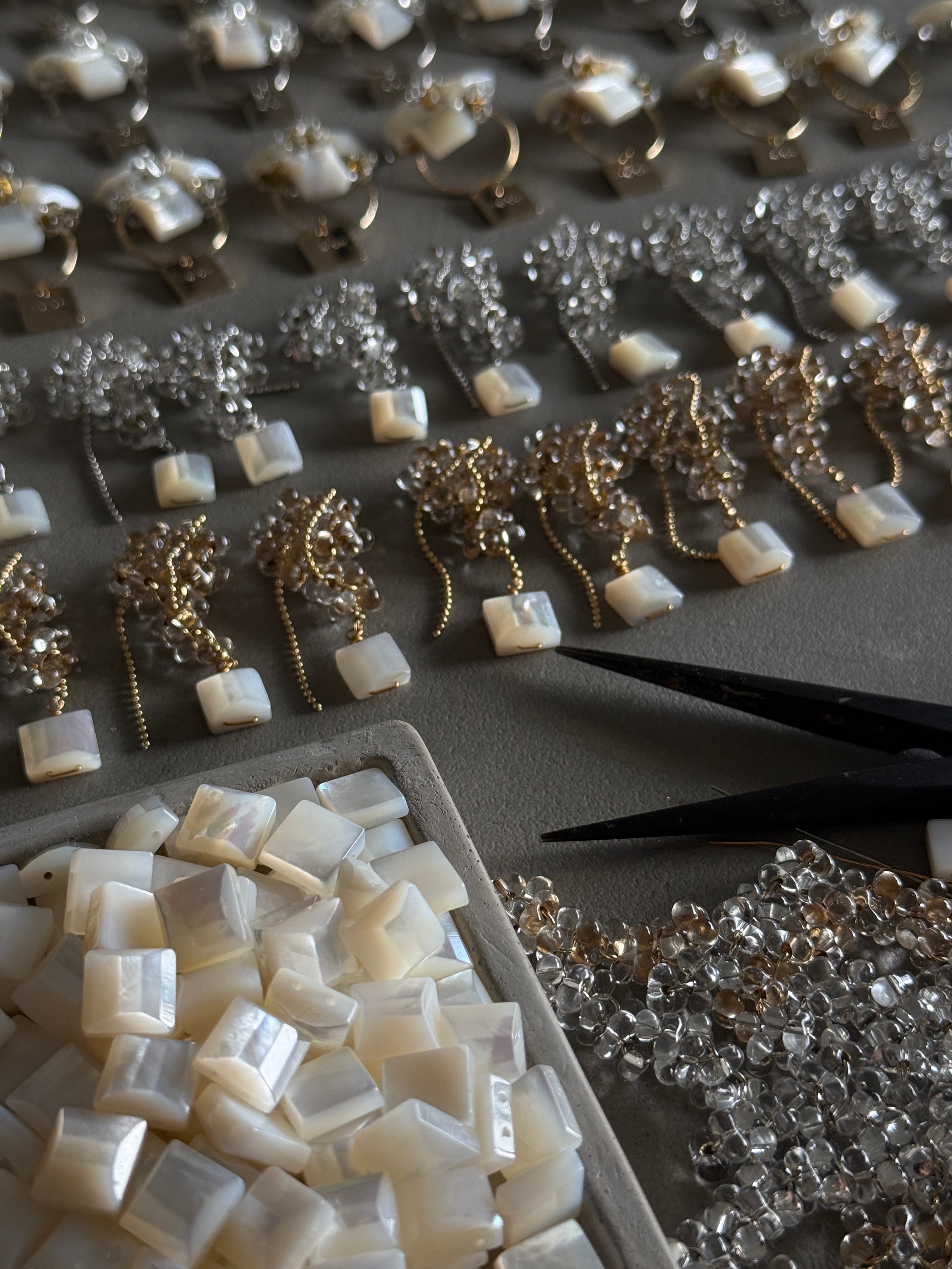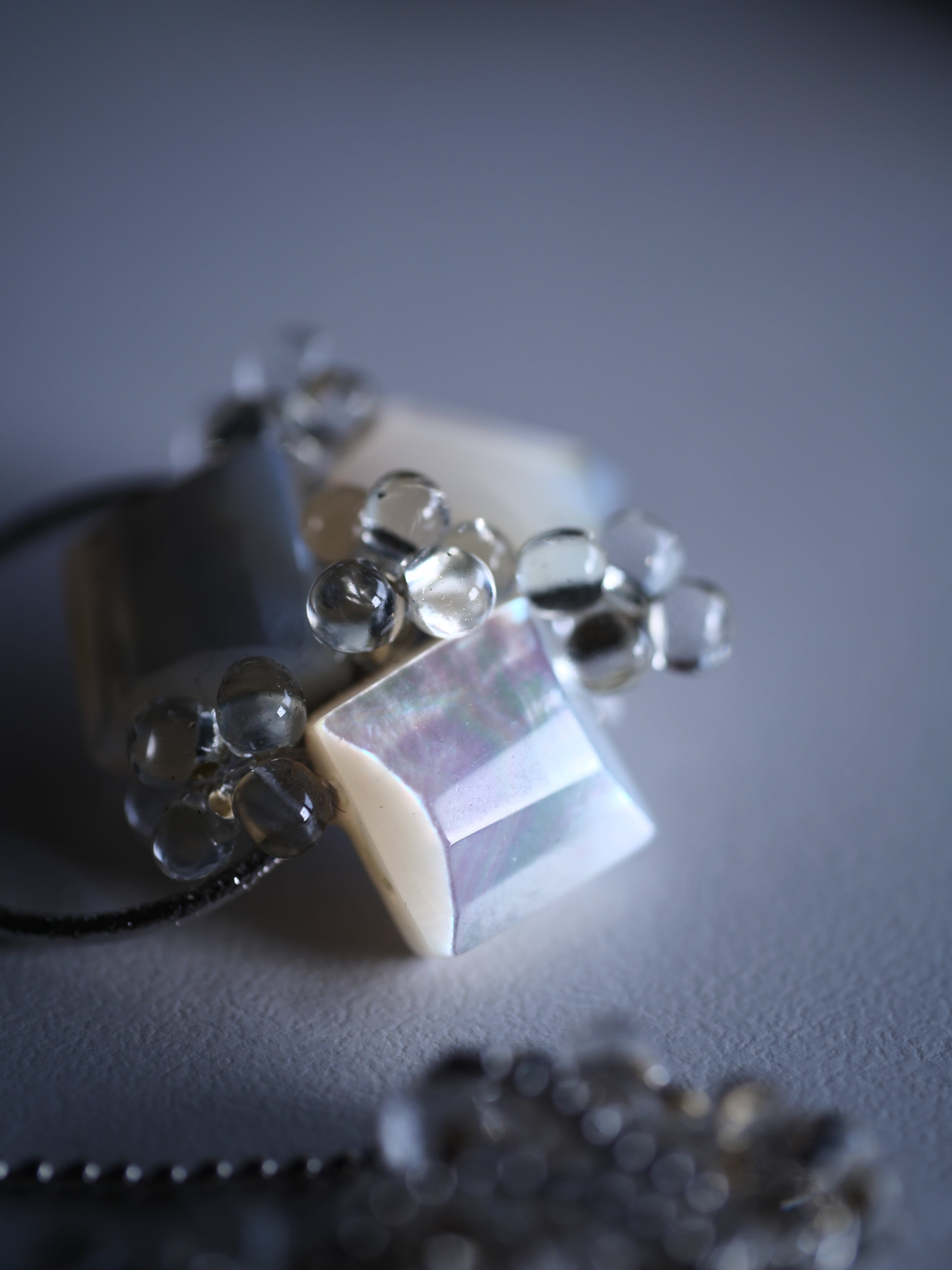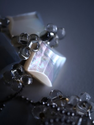 水滴ようなガラスビーズを一粒一粒繋いだ側は