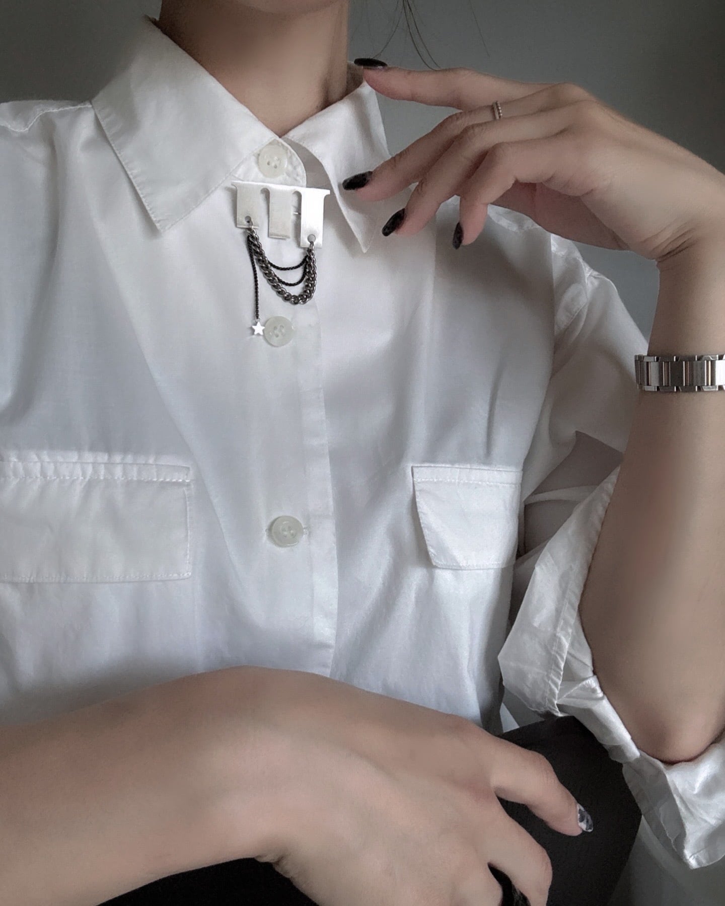 シャツの襟元中央に「襟元ピン」のように着けるのも端正なアクセント