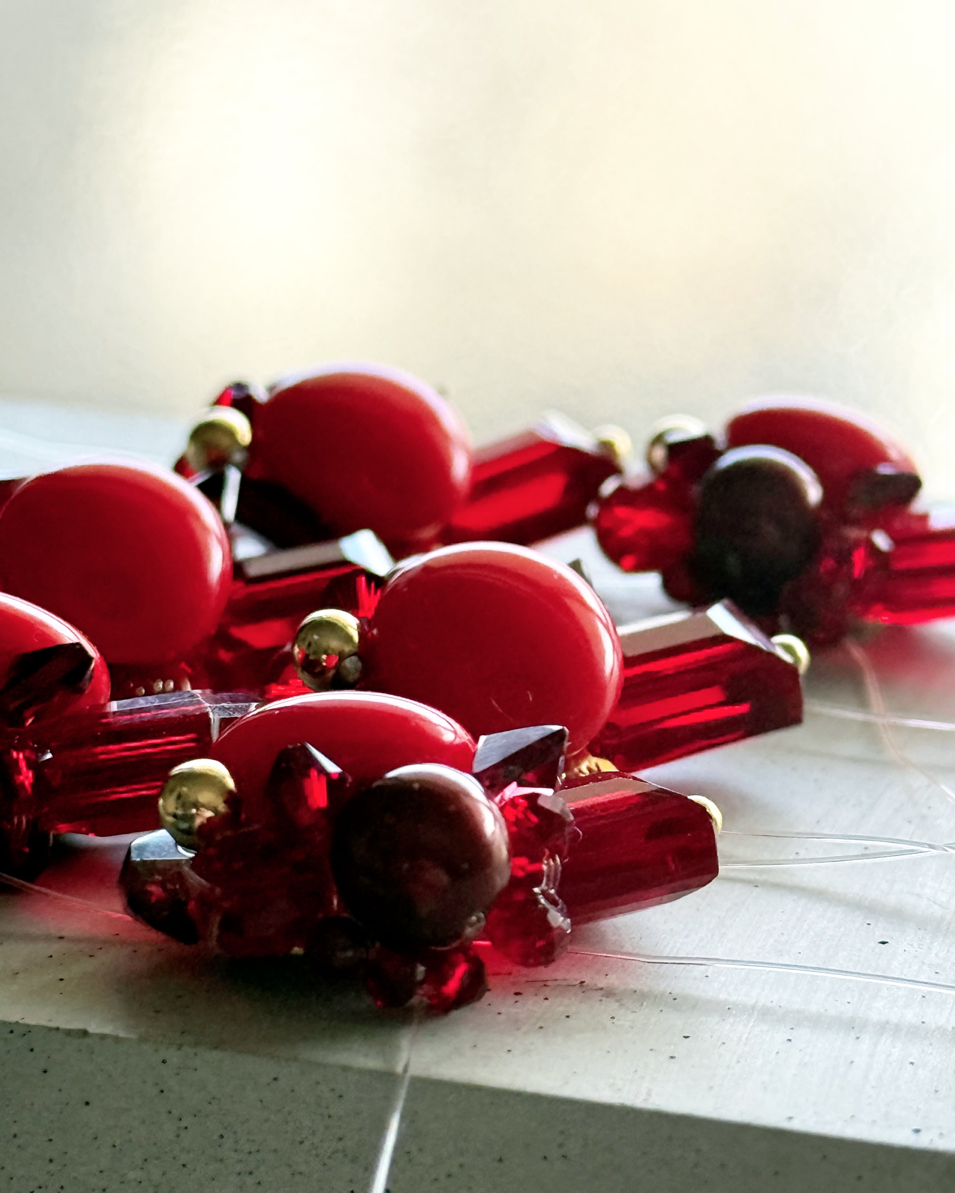 各素材にテグスを2本ずつ通しておりますので見た目以上に強固な作りとなっております
