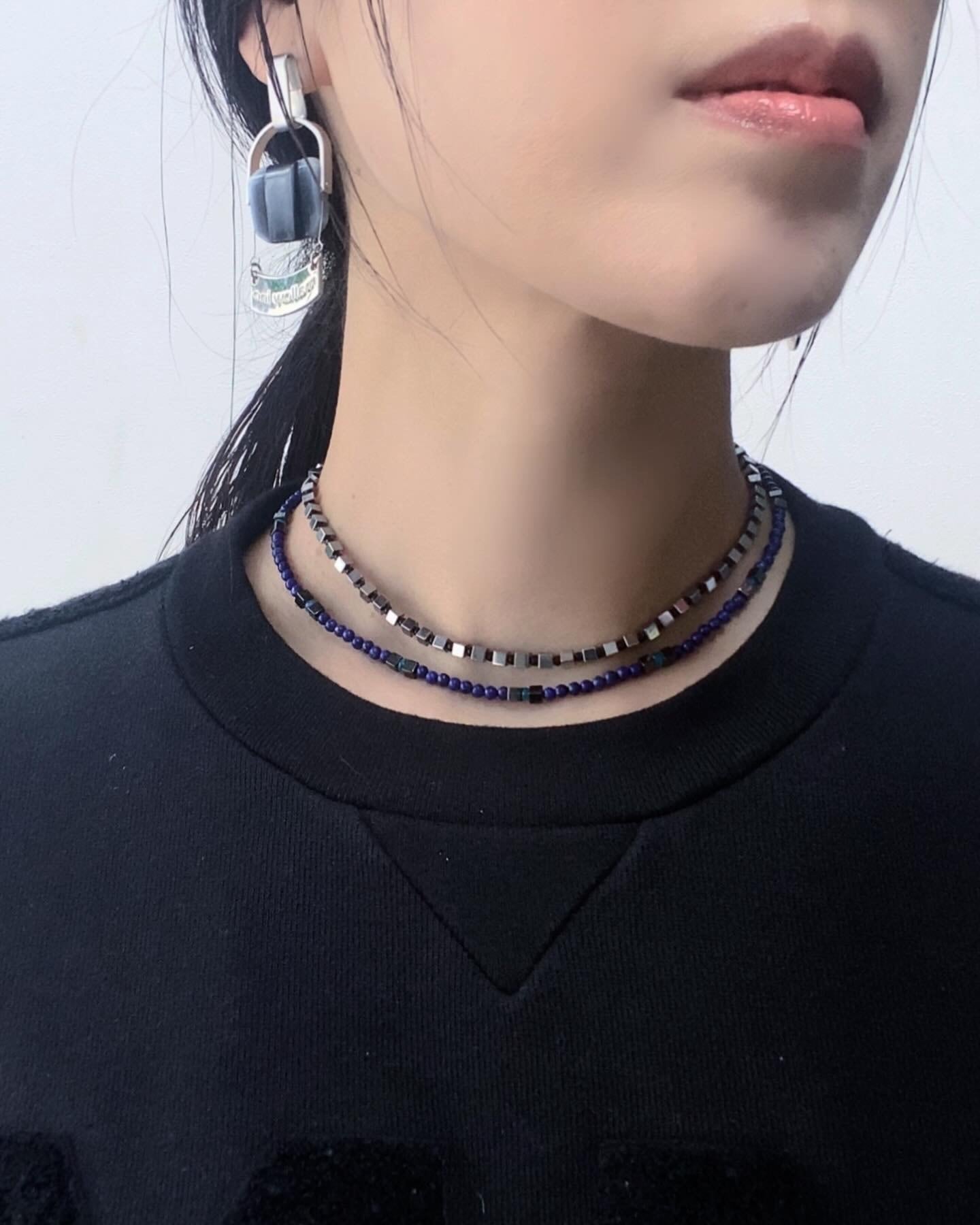 キューブチョーカーのアジャスターを使った場合はカラーチョーカーが内側になる重ねづけとなります