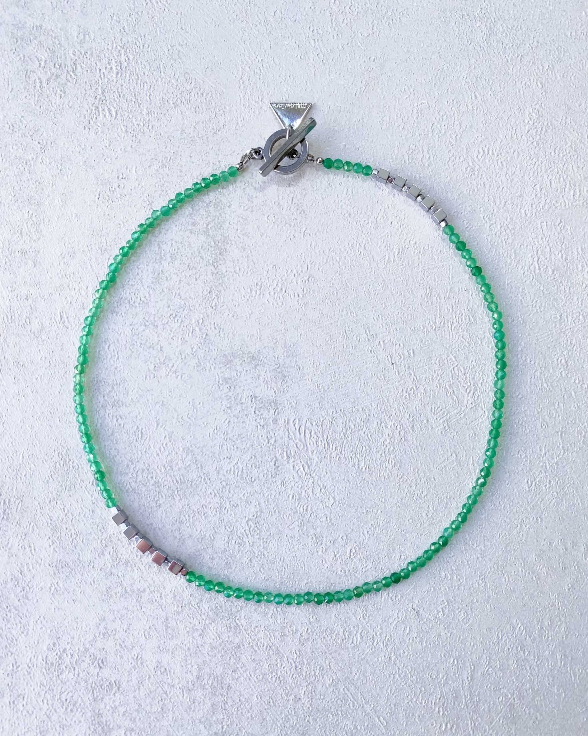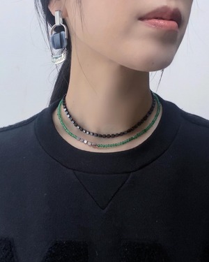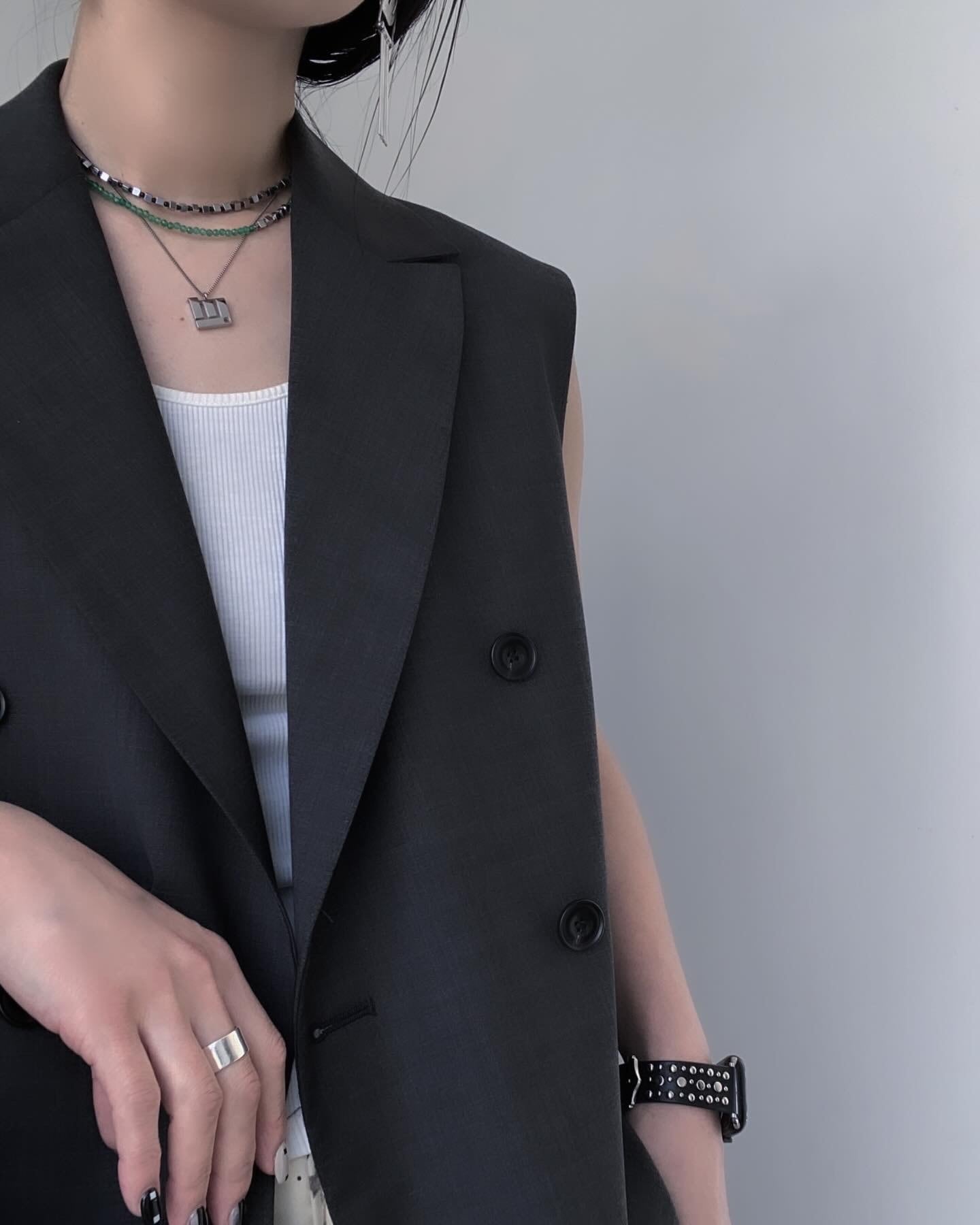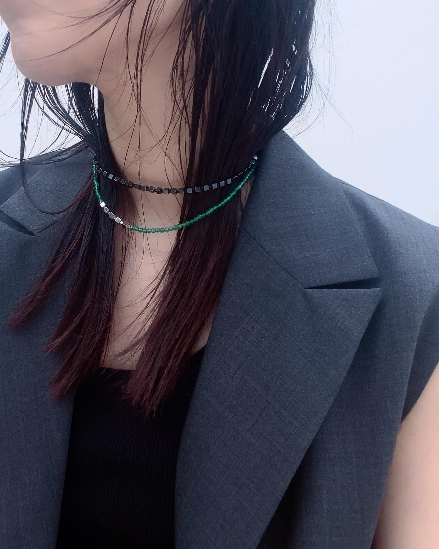 キューブチョーカーのアジャスターを使った場合はカラーチョーカーが内側になる重ねづけとなります