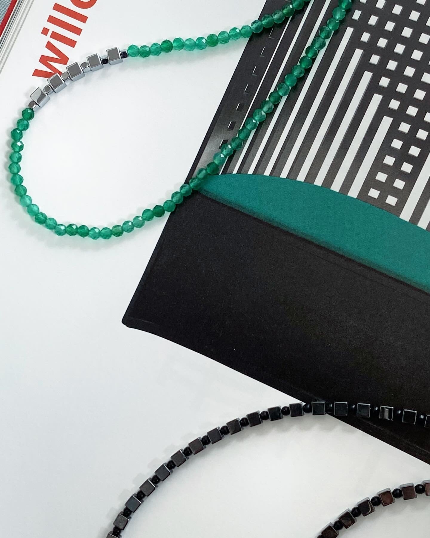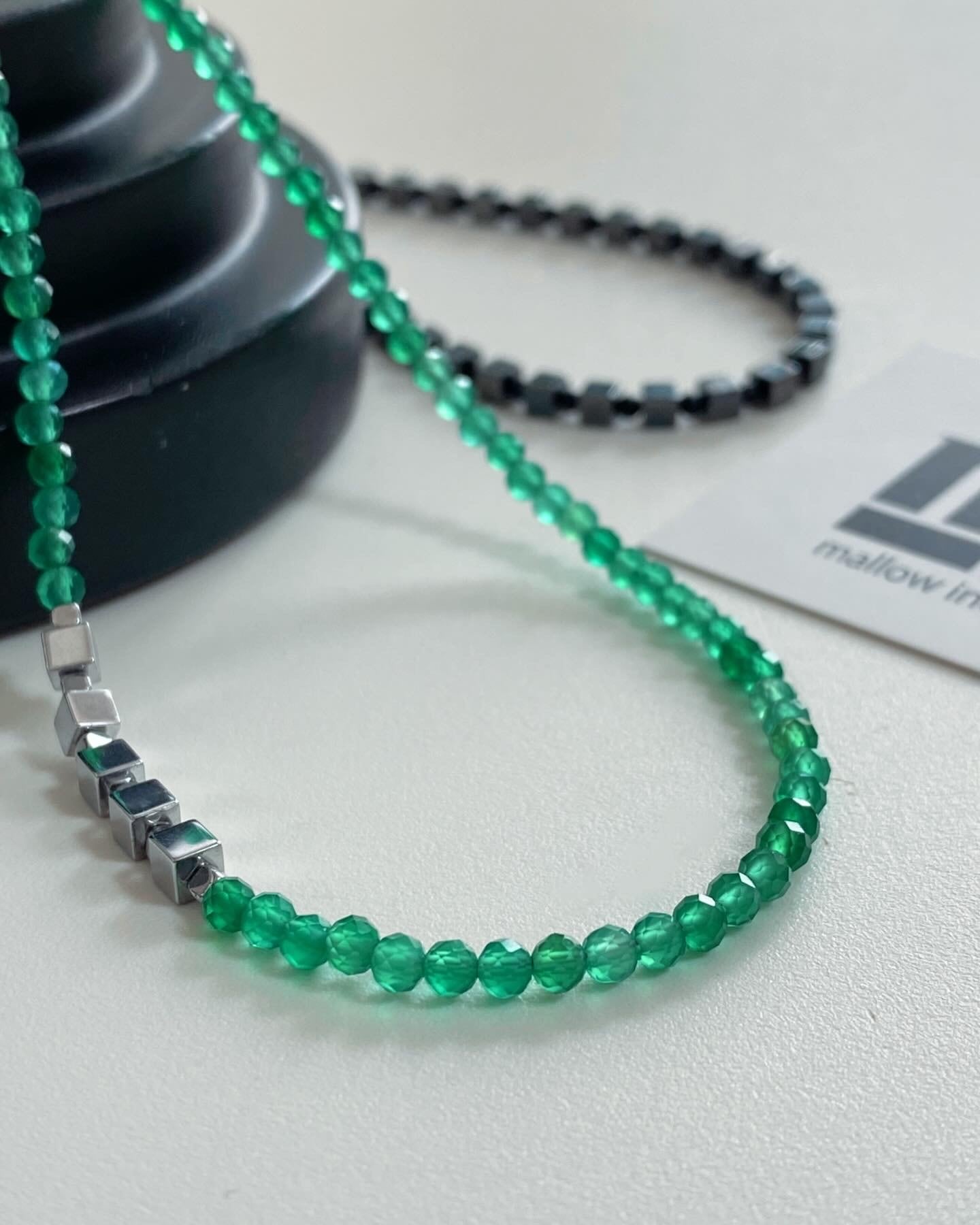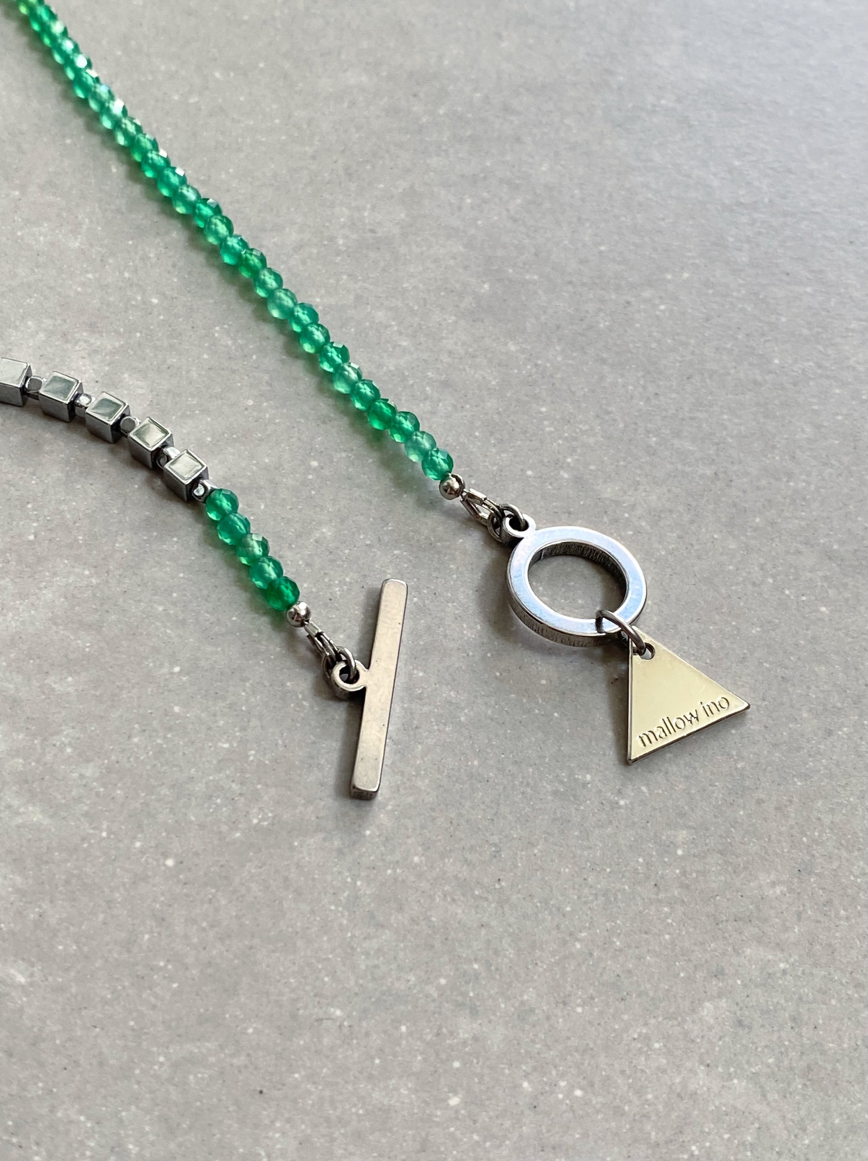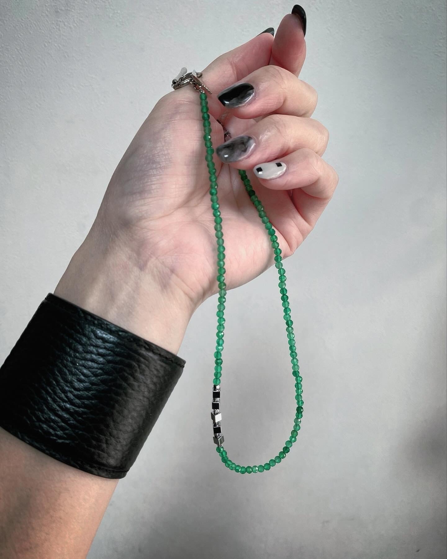 キューブチョーカーのアジャスターを使った場合はカラーチョーカーが内側になる重ねづけとなります