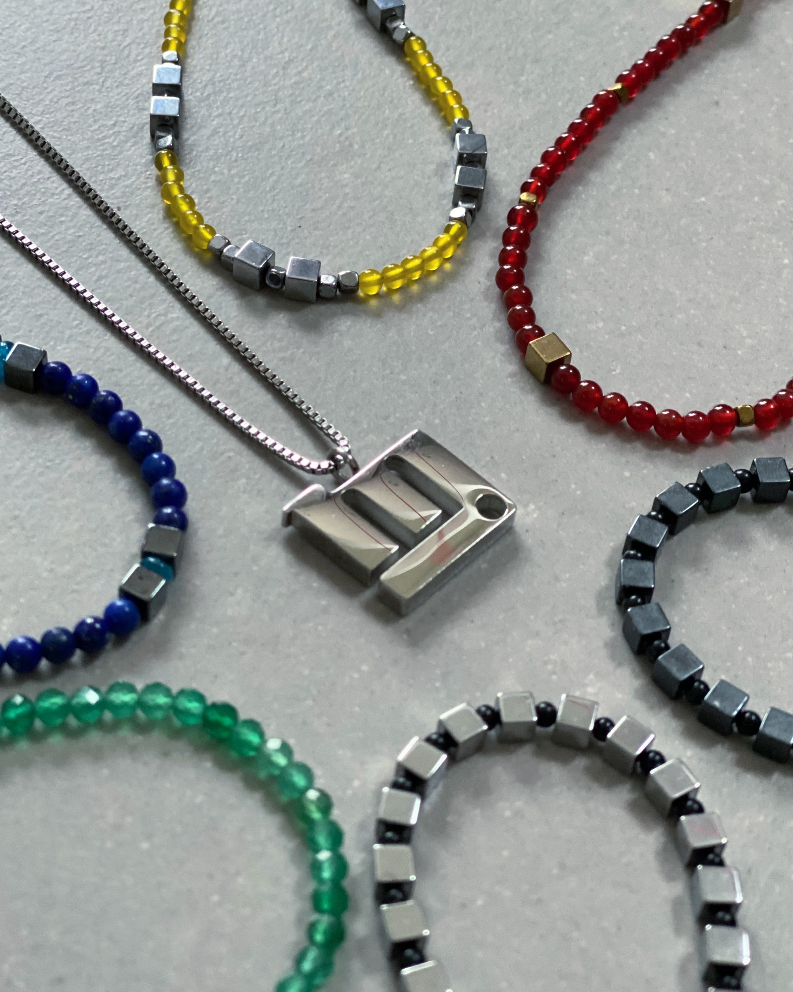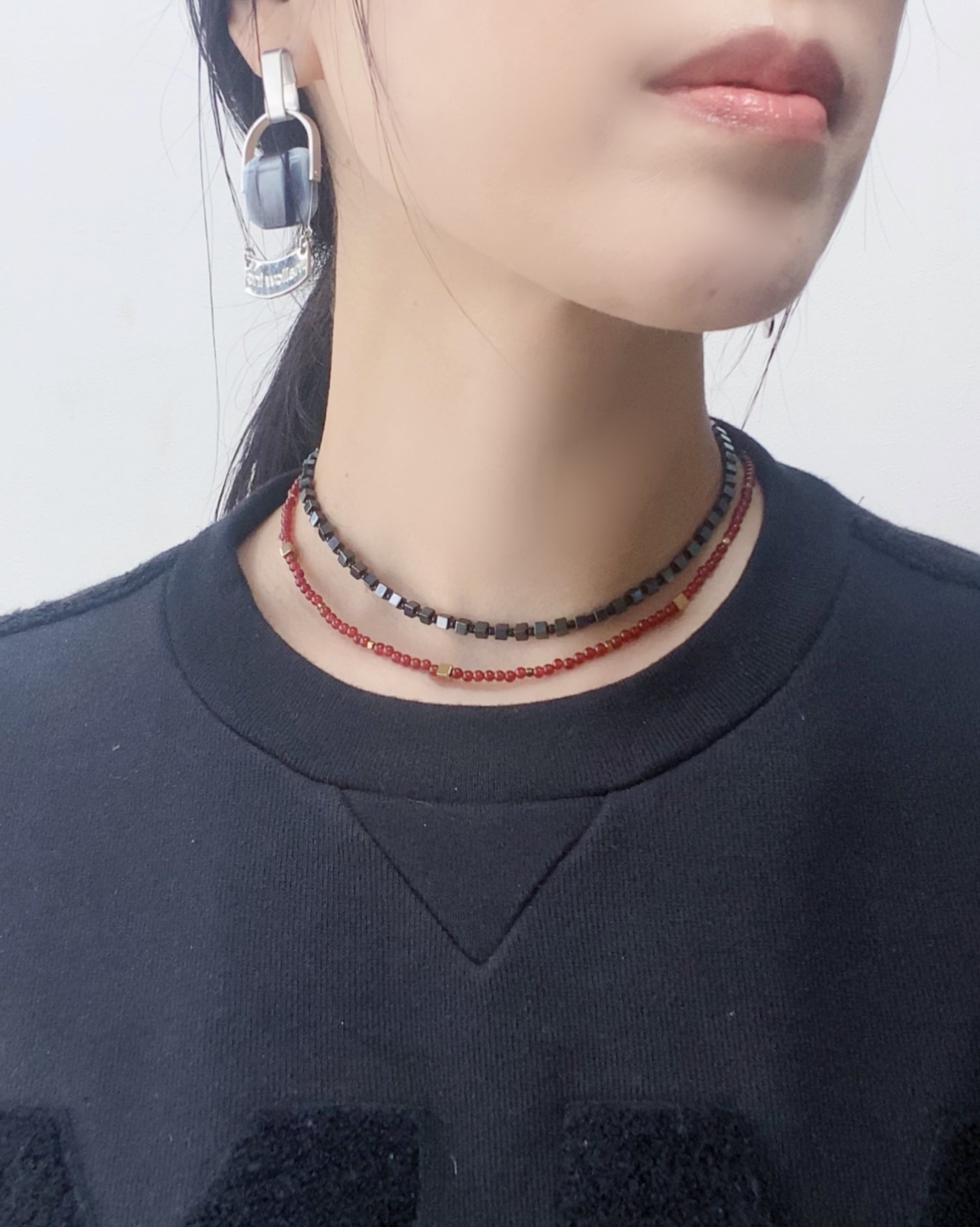 キューブチョーカーのアジャスターを使った場合はカラーチョーカーが内側になる重ねづけとなります
