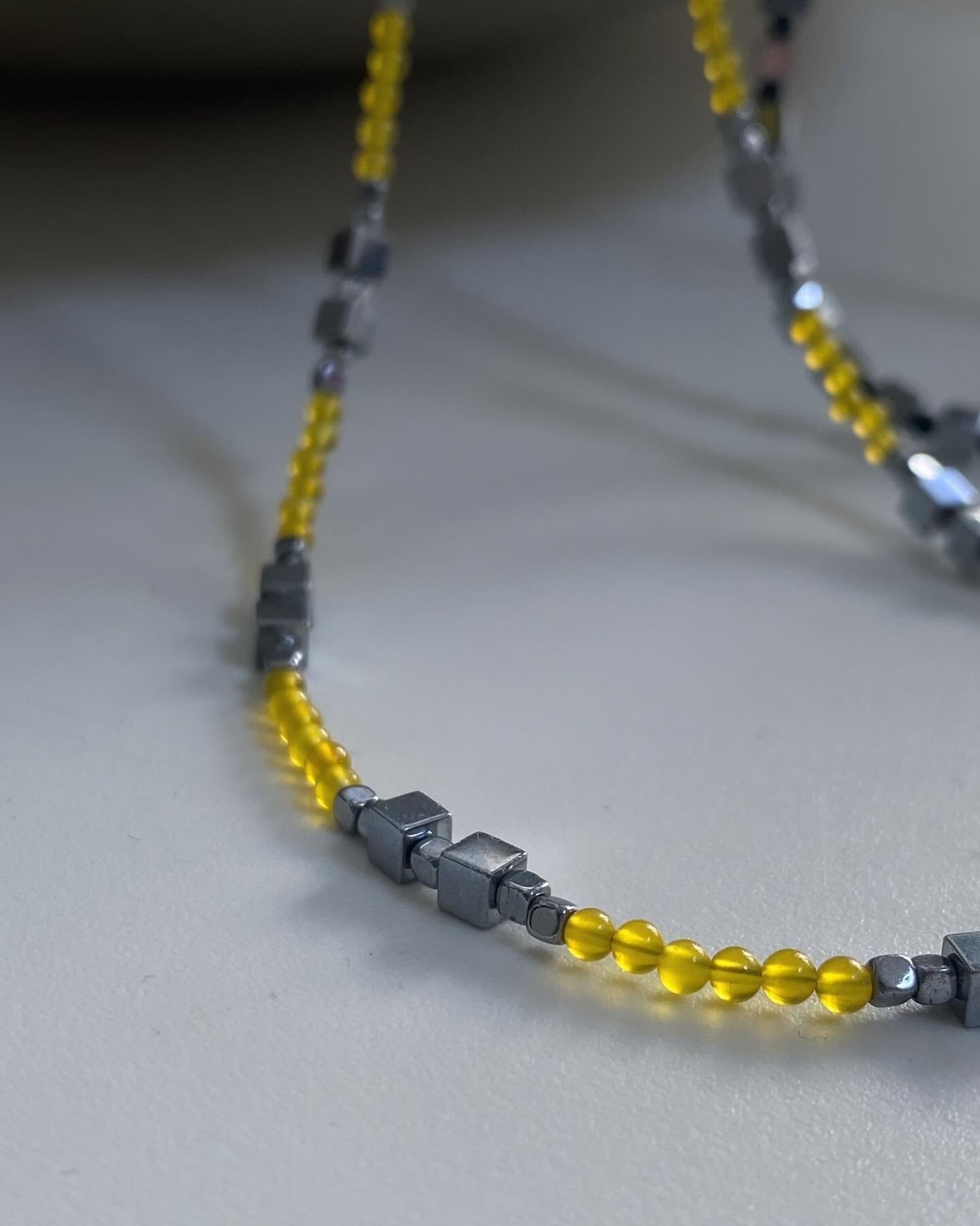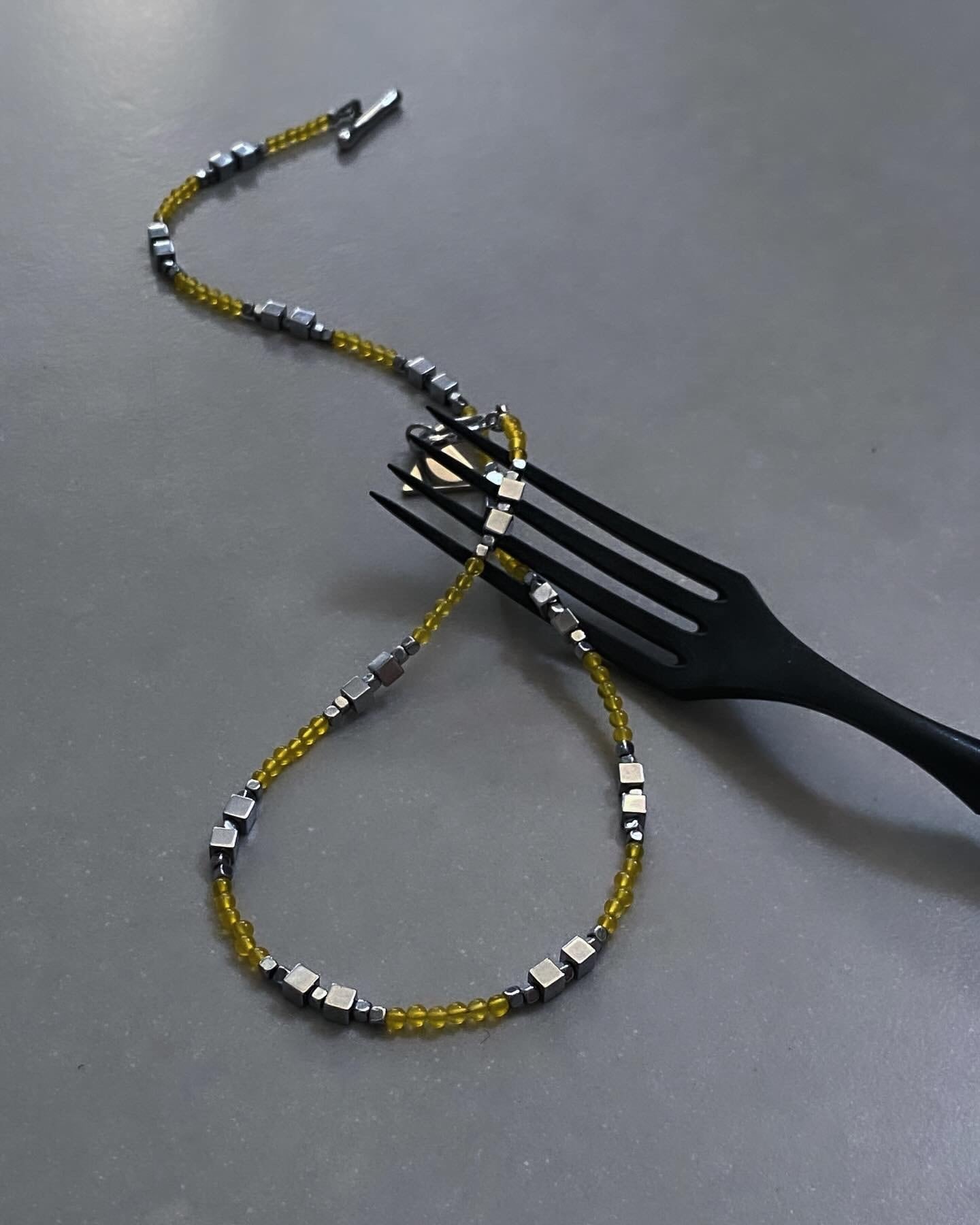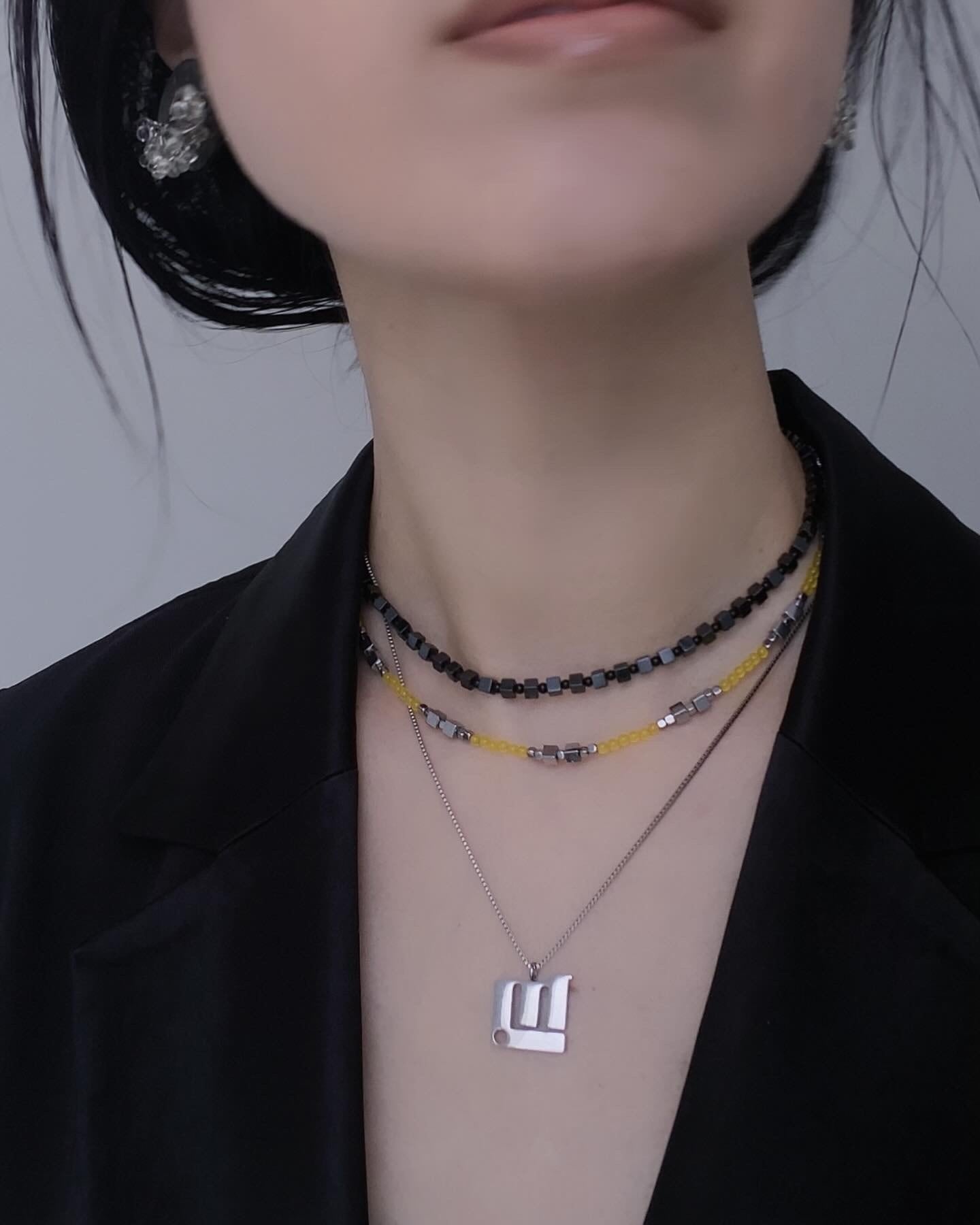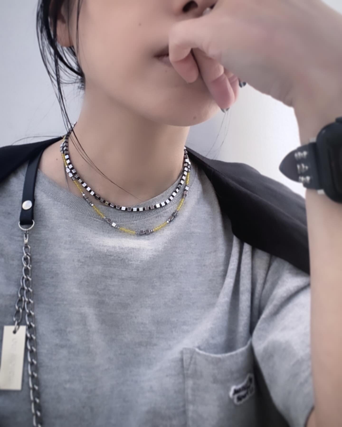 キューブチョーカーのアジャスターを使った場合はカラーチョーカーが内側になる重ねづけとなります